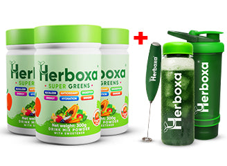 Herboxa® SUPER GREENS Olennaisia entsyymejä, elintärkeitä mineraaleja, hyödyllisiä probiootteja ja vihreitä superfoodeja hankittuna suoraan luontaistuotteista, kaikki pakattuna yhteen päivittäiseen annokseen. Vain yksi lusikallinen sekoitettuna 300 millilitraan vettä, otettuna päivittäin optimaalisen hyvinvoinnin saavuttamiseksi.