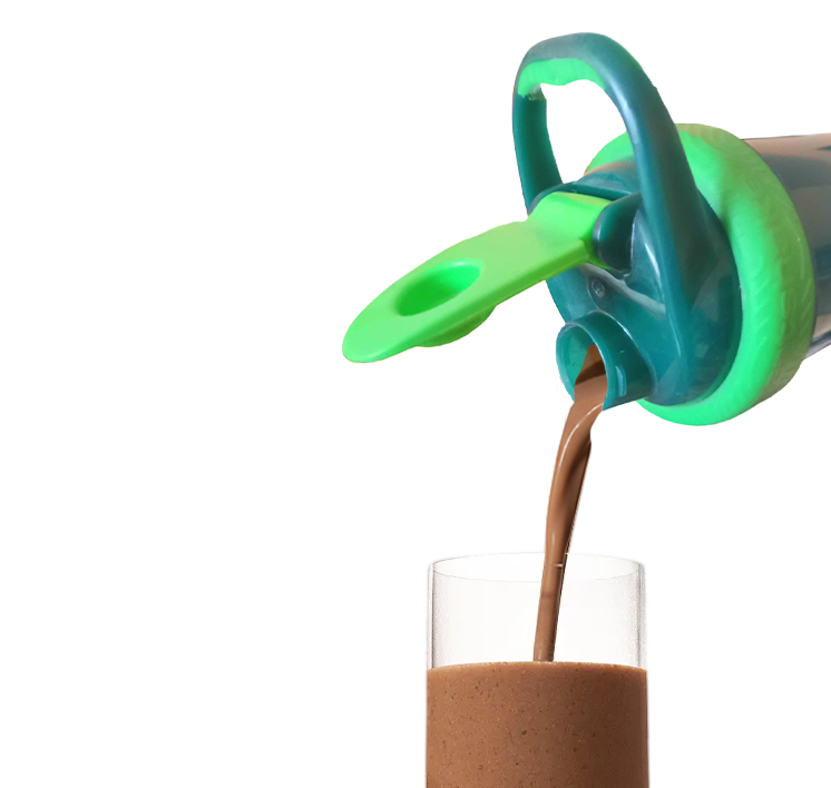 Lisää 450 ml kylmää vettä tai kasvipohjaista maitoa shakeriin tai tehosekoittimeen. Lisää 1 mitallinen (45 g) tai 2 mitallinen (90 g). Ravista tai sekoita voimakkaasti 10 sekunnin ajan ja nauti 2 tunnin kuluessa.