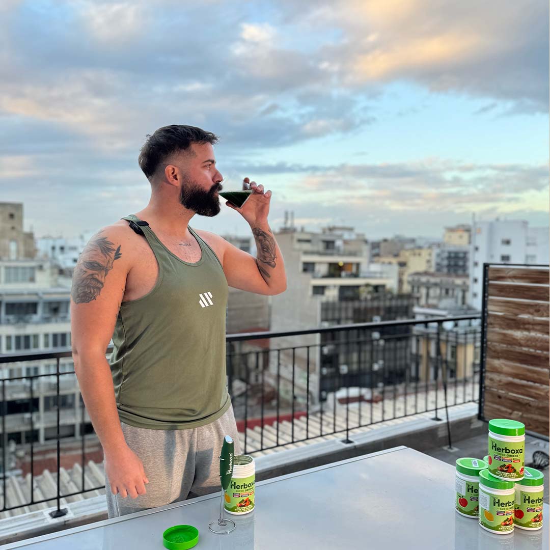 You can enjoy Herboxa® SUPER GREENS at any time of day—but for the best results, we recommend starting your morning with it on an empty stomach. That’s when your body is primed to absorb the nutrients most effectively.Just mix one scoop with 250–300 ml of cold water, stir or shake, and you’re good to go.It tastes great on its own with water—clean, refreshing, and naturally sweetened. Some people love adding a splash of lemon, blending it into a smoothie, or mixing it with oat milk. However you take it, you’re giving your body a powerful plant-based boost.